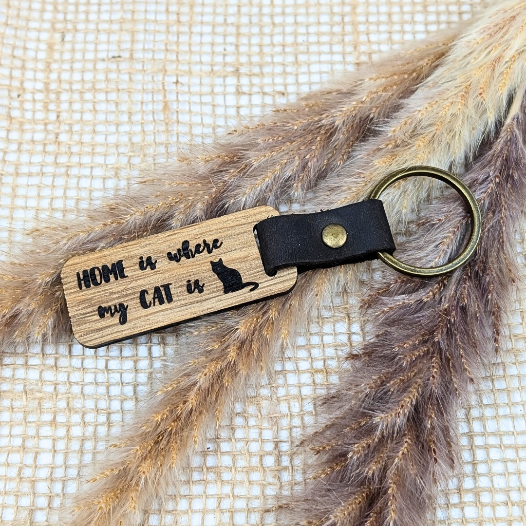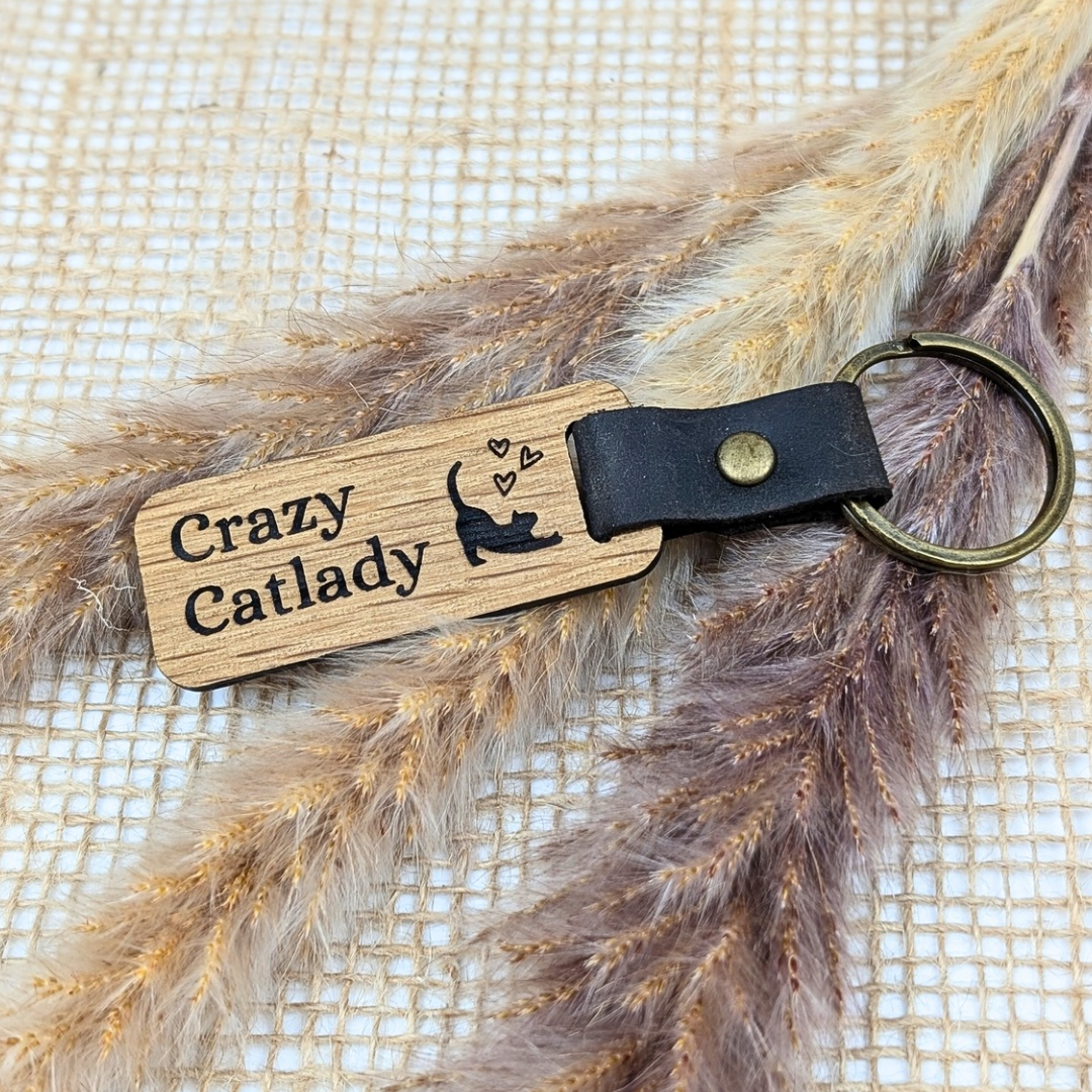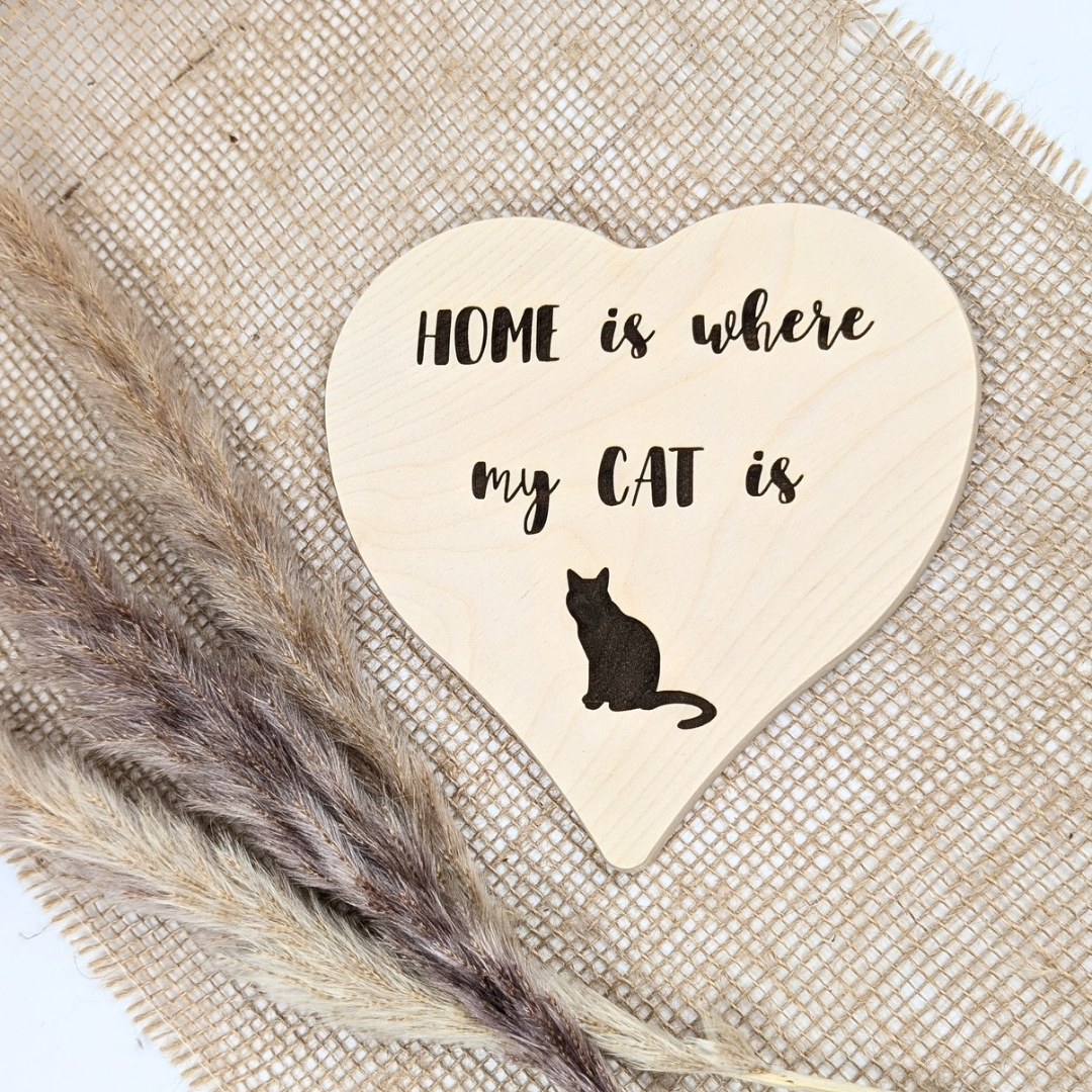 aus FSC-zertifiziertem Eichenholz mit schwarzer Filzunterseite und lustigen Katzensprüchen.