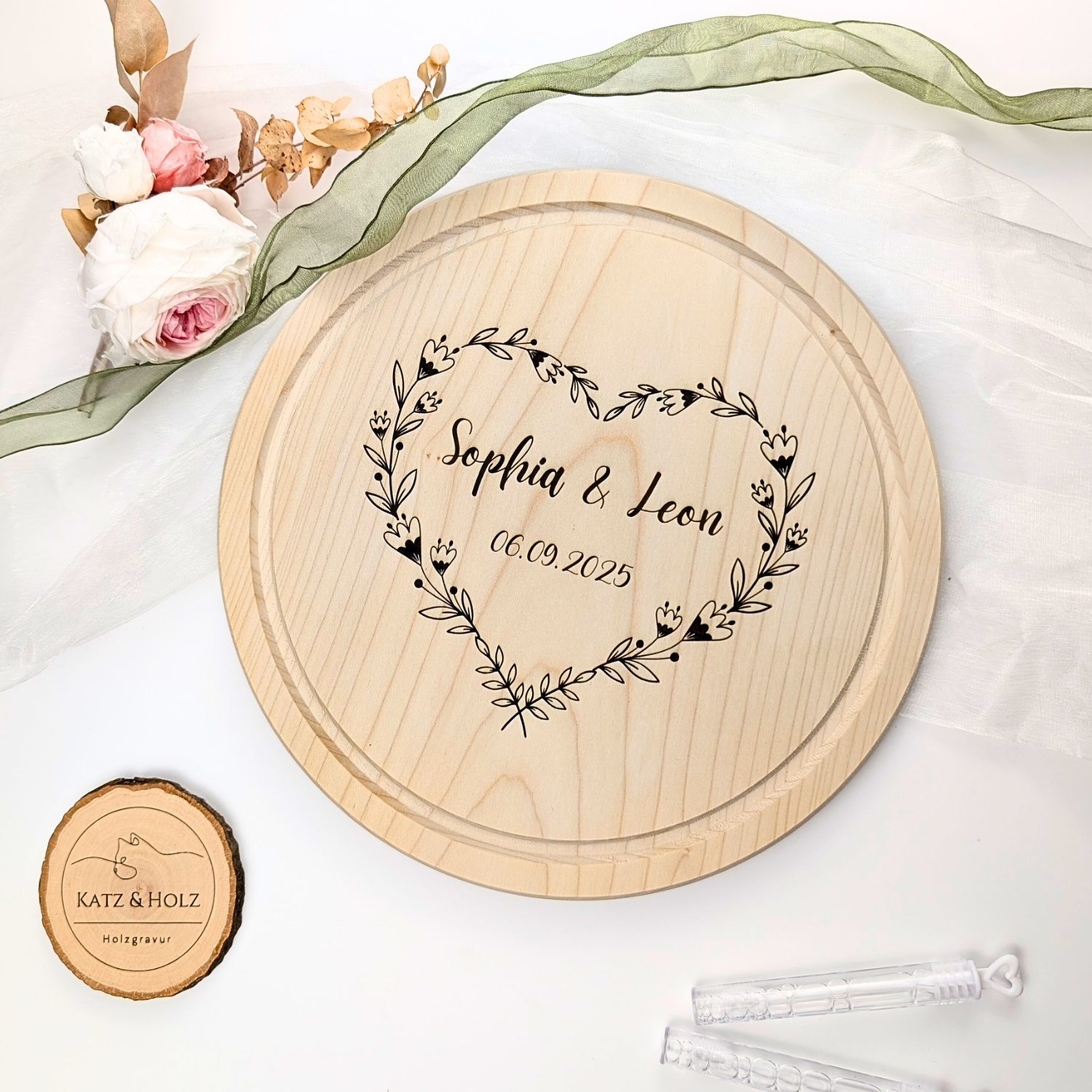 rund, personalisierbar mit Namen und Hochzeitsdatum